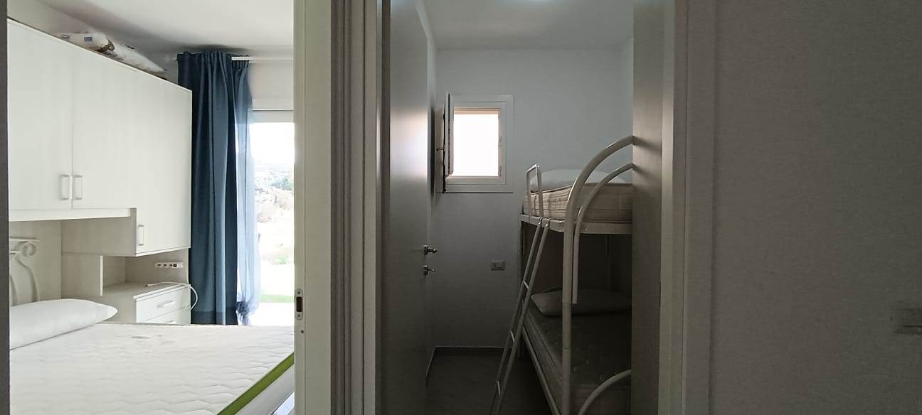 Three-room apartment from 2018 with private garden on Via Gramsci in Viddalba, in the province of Sassari, surrounded by greenery and close to the wonderful beaches of Northern Sardinia.