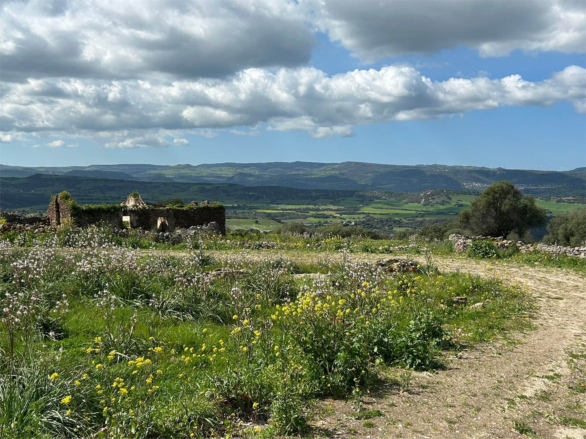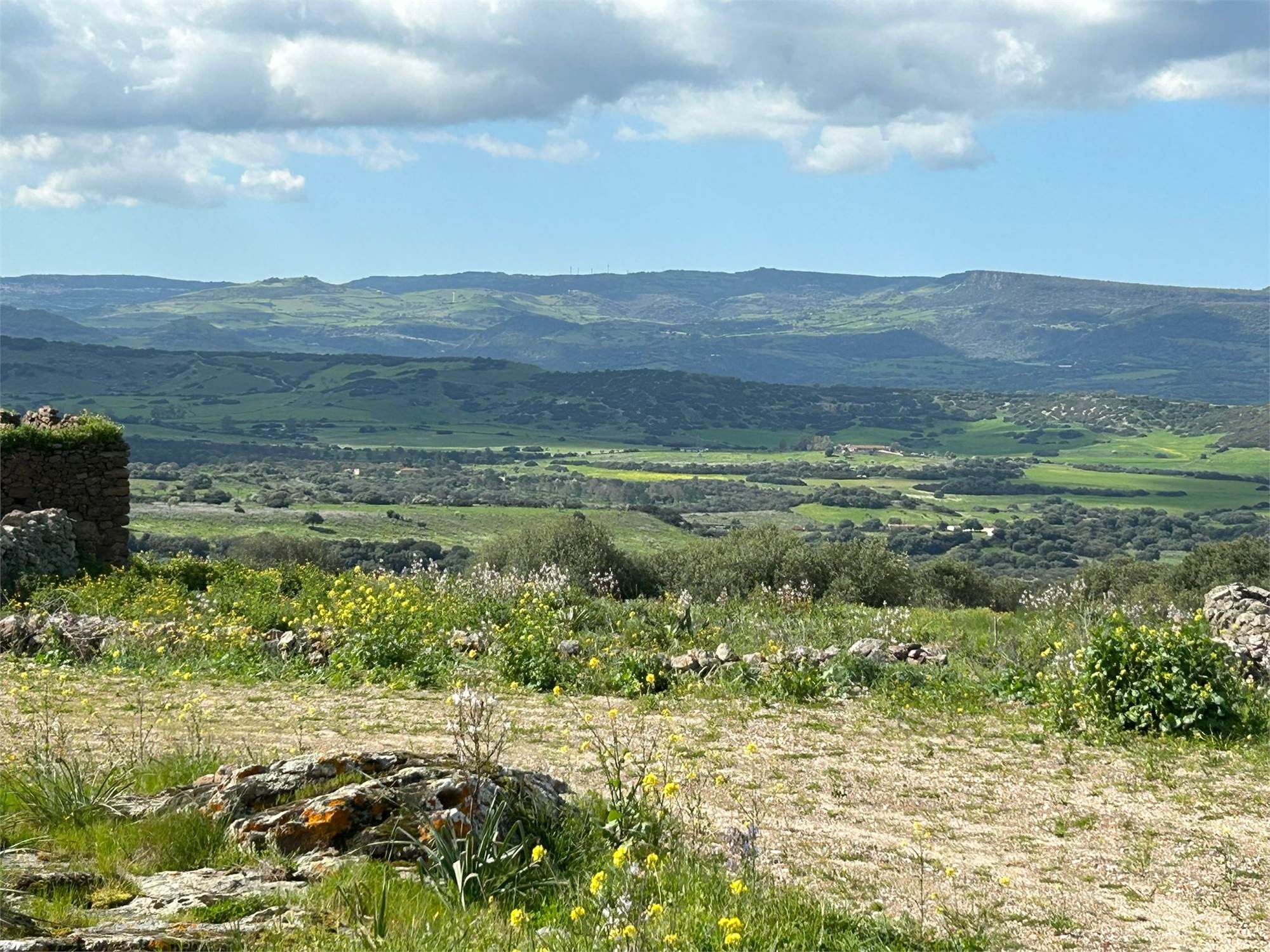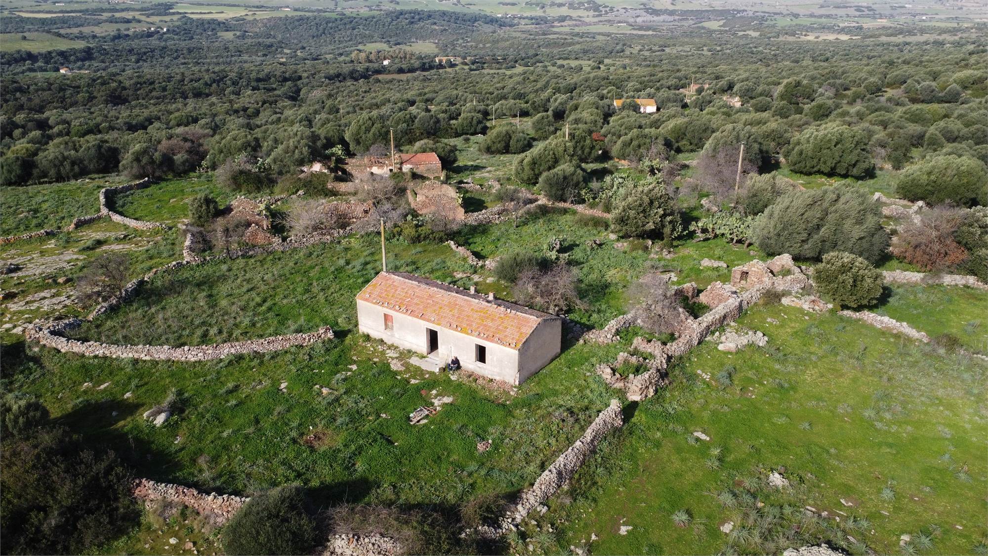 Questa proprietà di oltre 10 ettari si apre come un piccolo mondo privato: dolci colline, ulivi, antichi muri a secco, una sorgente naturale e una vista ampia e suggestiva che abbraccia i borghi di Chiaramonti, Perfugas e Bulzi. Il mare è raggiungibile in circa 30 minuti, ma qui si respira una Sardegna più vera, silenziosa e profonda.