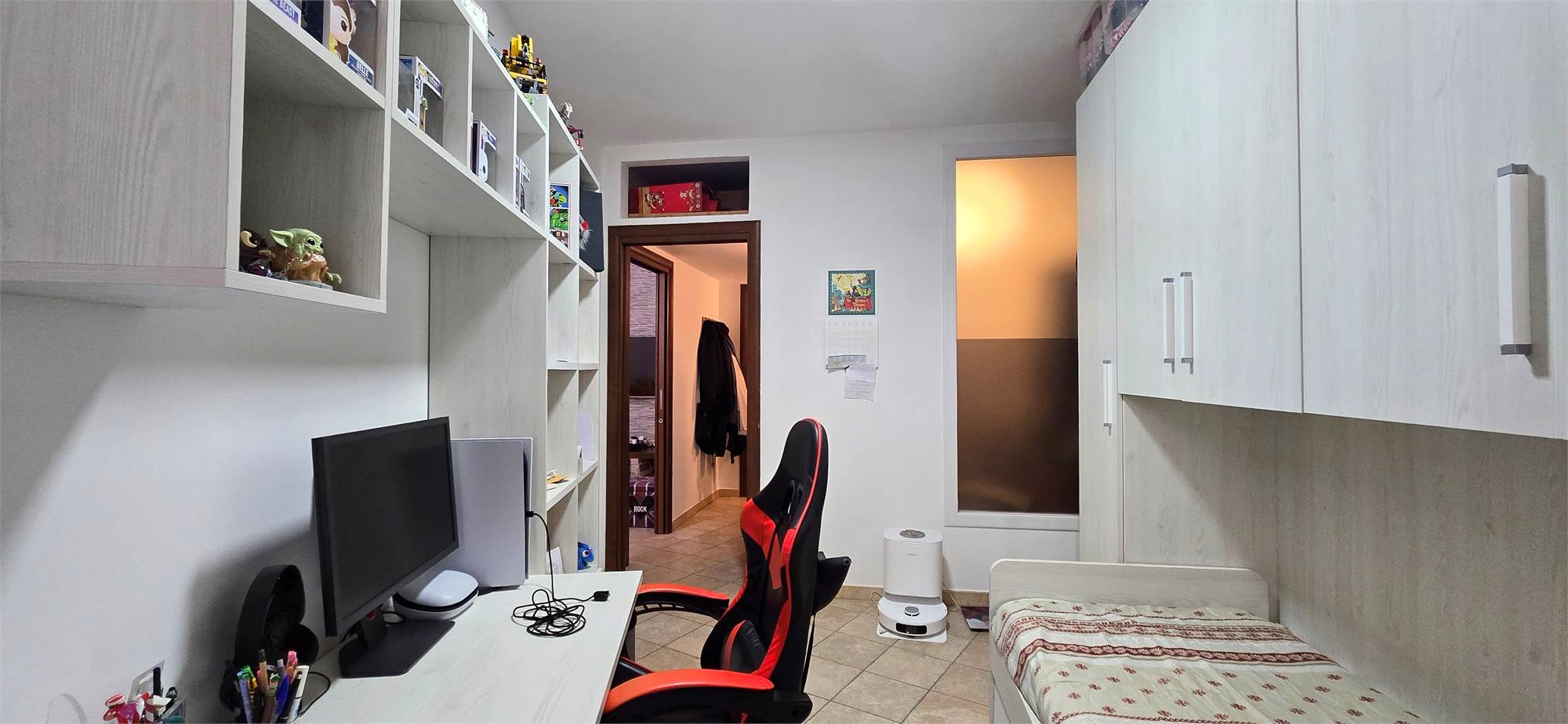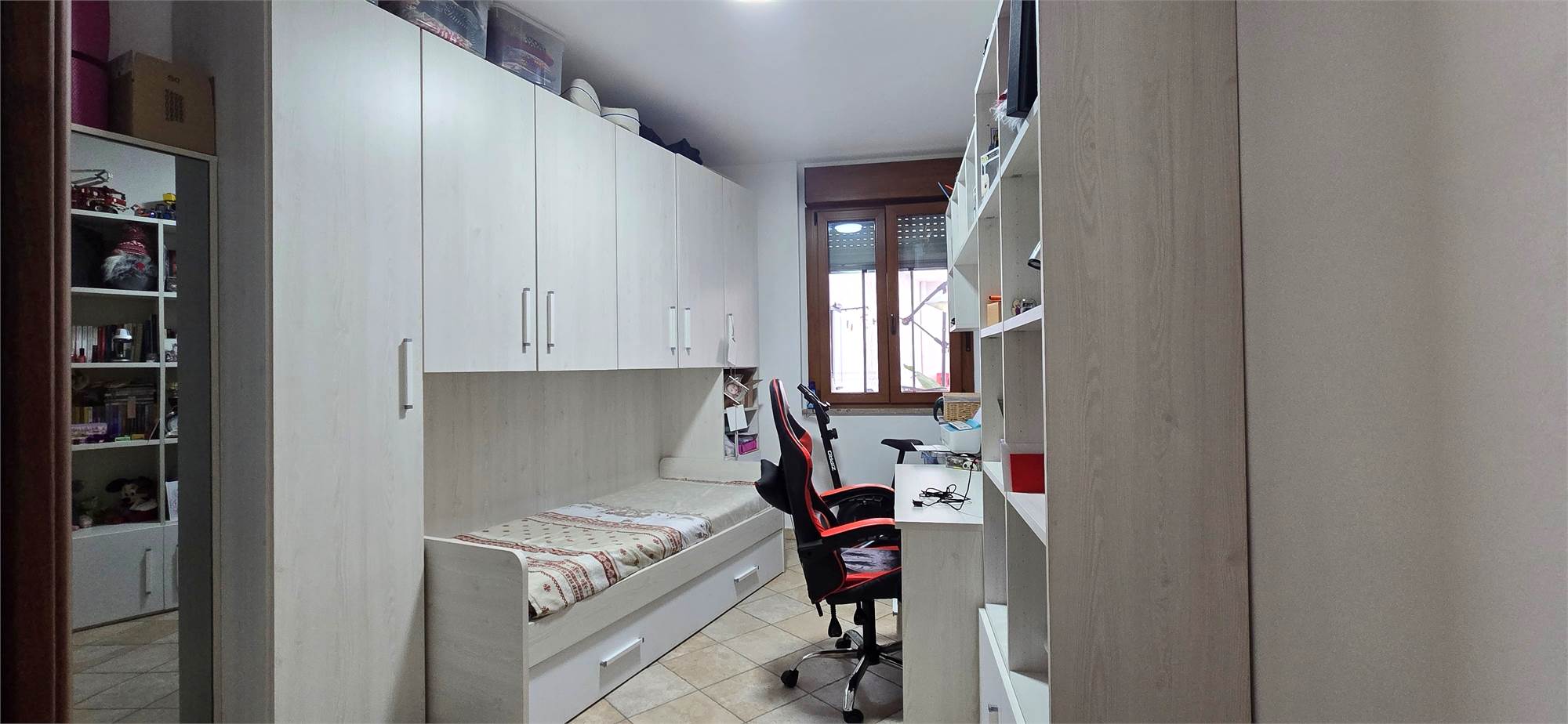 Un altro punto di forza concreto è la presenza dell’ascensore condominiale, utile per il collegamento con il sotto piano dove si trova il posto auto coperto, servito da carraio elettrico: un vantaggio reale in una via centrale dove il parcheggio non è sempre immediato.