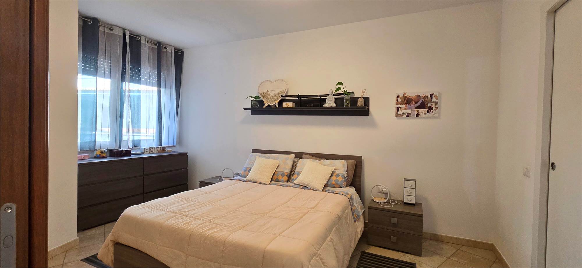Dal salotto si accede inoltre a un piccolo portico, ulteriore sfogo esterno prezioso e difficile da trovare in pieno centro. La zona notte è composta da due camere da letto, di cui la padronale con ambita cabina armadio, mentre la seconda stanza si presta perfettamente come cameretta, studio o stanza hobby.